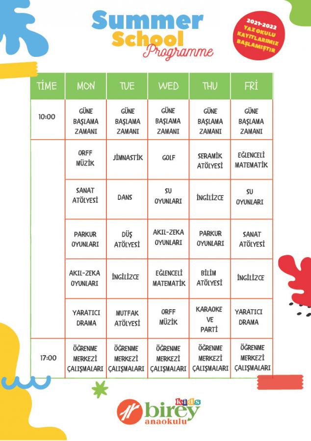 2022 Yaz Okulu Planı