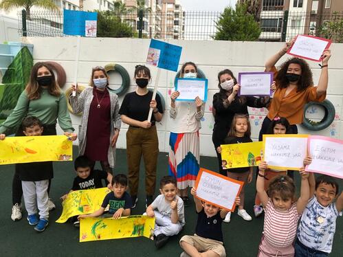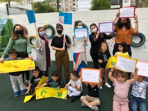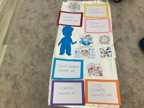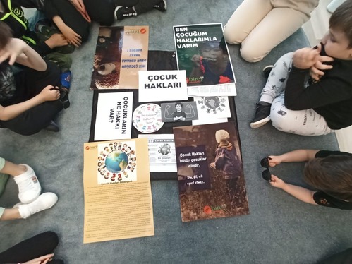 Çocuk hakları ile ilgili sınıf gazetesi oluşturduk, fikir beyan etme hakkımızı kullanarak drama çalışması yaptık, afiş hazırladık.